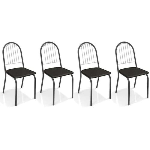 Cadeira de Cozinha Noruega 2C077 Kit 4 Un Preto Fosco/Courano Preto 110 - Kappesberg