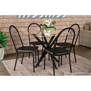 Cadeira Sala de Jantar Noruega 4C077PRF Kit 4 Un Preto Fosco/Courano Preto - Kappesberg