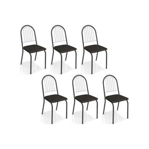 Cadeira de Cozinha Noruega C077 Kit 6 Un Preto Fosco/Courano Preto 110 - Kappesberg