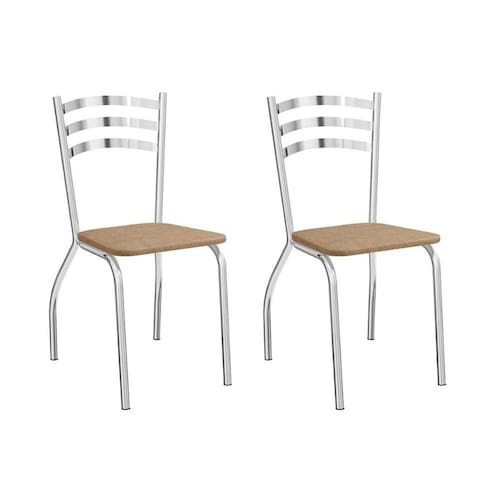 Cadeira Sala de Jantar Portugal 2C007CR Aço Kit 2 Uni Cromada - Assento Capuccino 31 - Kappesberg