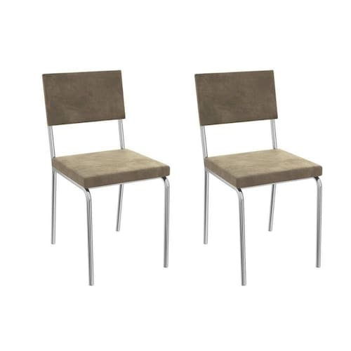 Cadeira De Cozinha Zaria 2c128 Aço Kit 2 Uni Cromado/suede Bege - Kappesberg