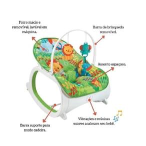 A cadeira apresenta função musical, vibra para ninar e ainda traz divertidos e fofos brinquedos para serem pendurados no arco. A cadeirinha é fundamental para ajudar no dia a dia das mamães que precisam realizar inúmeras tarefas, pois relaxa e entretém o bebê durante todo o dia e garantindo seu conforto. Tudo pensado para o deixar mais tranquilo, relaxado e feliz!