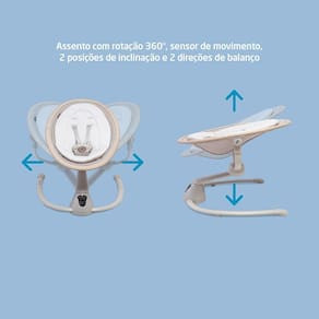 Visor Touchscreen: Com controles intuitivos, oferece 2 direções de balanço, 5 velocidades e 15 melodias relaxantes para ajustar conforme a preferência do bebê.