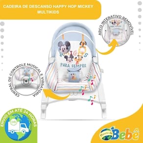 Cadeira de Descanso e Balanço Para Bebê Com Canção de Ninar Mickey - Multikids A Cadeira Happy Hop Mickey da Multikids é a opção ideal para proporcionar ao seu bebê momentos de descanso e diversão. Com um design inovador e funcional, ela é 2 em 1, podendo ser utilizada tanto no modo balanço quanto no modo cadeira de descanso, adaptando-se às necessidades do seu pequeno. Com recursos pensados para o bem-estar do bebê, ela conta com 2 brinquedos interativos que estimulam o desenvolvimento, além de um módulo musical com 10 canções de ninar e 5 sons da natureza. A função de vibração, com duas intensidades, também contribui para o relaxamento do bebê, criando um ambiente mais tranquilo e acolhedor. Seu cinto de segurança de 3 pontos, com protetor entrepernas, garante que o bebê fique sempre bem acomodado e protegido. Já o encosto acolchoado oferece 2 posições de recline, proporcionando ainda mais conforto para o pequeno. Sua estrutura leve e resistente torna o uso mais prático, enquanto os pés retráteis permitem alternar facilmente entre as funções de balanço e descanso. Outro destaque é o seu arco interativo removível e a sua estrutura dobrável, que facilita seu armazenamento e seu transporte, tornando-a perfeita para diferentes ambientes e levando ainda mais diversão para o pequeno em qualquer lugar. Aprovada pelo Inmetro, a Cadeira Happy Hop é ideal para acompanhar o crescimento do seu bebê com conforto e segurança. Principais Características: - Idade Recomendada do Nascimento até 3 Anos - Peso Máximo Suportado: 20kgs - Modelo: Happy Hop Mickey - Possui 10 Canções de Ninar e 5 Sons da Natureza - Central de Controle com 2 Ajustes de Volume - Função Vibração com 2 Intensidades - Estrutura com Fechamento Dobrável Compacto - Encosto com 2 Posições de Recline - Pés Retráteis para Uso na Função Balanço ou Descanso - Cinto de Segurança de 3 Pontos - Possui Protetor Entrepernas - Encosto Confortável Acolchoado - Estrutura Leve e Resistente - Possui 2 Brinquedinhos Interativos - Arco Interativo Removível - Necessário 4 Pilhas AA Não Inclusas - Aprovado pelo Inmetro Especificações Técnicas: - Conteúdo da Embalagem: 1 Cadeira de Descanso Happy Hop Mickey - Multikids - Dimensões do Produto Aberto AxLxP : 45,5 x 49,0 x 61,0cm - Dimensões do Produto Fechado AxLxP : 62,0 x 49,0 x 61,0cm - Composição/Material: Polipropileno, Poliéster e Ferro - Alimentação: 4 Pilhas AA Não Inclusas - Peso: 3,000kgs - : 90 dias Contra Defeitos de Fabricação Pelo Fabricante - Certificação: Inmetro 001678/2022 - Código do Fabricante: BB383 - EAN: 7908842809252 - Marca: Multikids Imagens Meramente Ilustrativas. As cores e estampas podem variar de acordo com o lote do fabricante.