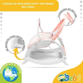Cadeira de Descanso e Balanço Para Bebê Com Canção de Ninar Minnie - Multikids A Cadeira Happy Hop Minnie da Multikids é a opção ideal para proporcionar ao seu bebê momentos de descanso e diversão. Com um design inovador e funcional, ela é 2 em 1, podendo ser utilizada tanto no modo balanço quanto no modo cadeira de descanso, adaptando-se às necessidades do seu pequeno. Com recursos pensados para o bem-estar do bebê, ela conta com 2 brinquedos interativos que estimulam o desenvolvimento, além de um módulo musical com 10 canções de ninar e 5 sons da natureza. A função de vibração, com duas intensidades, também contribui para o relaxamento do bebê, criando um ambiente mais tranquilo e acolhedor. Seu cinto de segurança de 3 pontos, com protetor entrepernas, garante que o bebê fique sempre bem acomodado e protegido. Já o encosto acolchoado oferece 2 posições de recline, proporcionando ainda mais conforto para o pequeno. Sua estrutura leve e resistente torna o uso mais prático, enquanto os pés retráteis permitem alternar facilmente entre as funções de balanço e descanso. Outro destaque é o seu arco interativo removível e a sua estrutura dobrável, que facilita seu armazenamento e seu transporte, tornando-a perfeita para diferentes ambientes e levando ainda mais diversão para o pequeno em qualquer lugar. Aprovada pelo Inmetro, a Cadeira Happy Hop é ideal para acompanhar o crescimento do seu bebê com conforto e segurança. Principais Características: - Idade Recomendada do Nascimento até 3 Anos - Peso Máximo Suportado: 20kgs - Modelo: Happy Hop Minnie - Possui 10 Canções de Ninar e 5 Sons da Natureza - Central de Controle com 2 Ajustes de Volume - Função Vibração com 2 Intensidades - Estrutura com Fechamento Dobrável Compacto - Encosto com 2 Posições de Recline - Pés Retráteis para Uso na Função Balanço ou Descanso - Cinto de Segurança de 3 Pontos - Possui Protetor Entrepernas - Encosto Confortável Acolchoado - Estrutura Leve e Resistente - Possui 2 Brinquedinhos Interativos - Arco Interativo Removível - Necessário 4 Pilhas AA Não Inclusas - Aprovado pelo Inmetro Especificações Técnicas: - Conteúdo da Embalagem: 1 Cadeira de Descanso Happy Hop Minnie - Multikids - Dimensões do Produto Aberto AxLxP : 45,5 x 49,0 x 61,0cm - Dimensões do Produto Fechado AxLxP : 62,0 x 49,0 x 61,0cm - Composição/Material: Polipropileno, Poliéster e Ferro - Alimentação: 4 Pilhas AA Não Inclusas - Peso: 3,000kgs - : 90 dias Contra Defeitos de Fabricação Pelo Fabricante - Certificação: Inmetro 001678/2022 - Código do Fabricante: BB482 - EAN: 7908842809276 - Marca: Multikids Imagens Meramente Ilustrativas. As cores e estampas podem variar de acordo com o lote do fabricante.