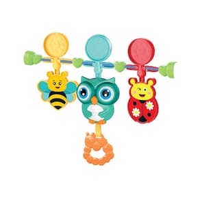 Alça removível com 3 brinquedos divertidos - sendo um dos brinquedos musical por corda com 3 baterias lr44 inclusas .