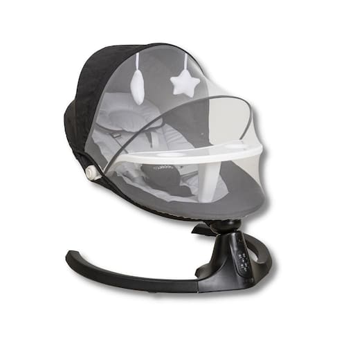 - Capota com tela mosquiteiro. cinto de segurança de 5 pontos com ajuste;