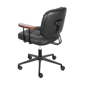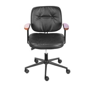 Conta com sua estrutura em aço pintado, assento em encosto com espuma revestida em PU, base preta e braços em madeira, levando um toque a mais de charme para a peça!