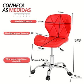 Seu design ergonômico, com assento e encosto estofados em espuma de alta densidade, se adapta ao corpo, proporcionando postura correta e prevenindo dores nas costas. Com base giratória e rodinhas, a Cadeira Slim Vegas oferece movimentação livre e fácil acesso a todo o ambiente. Produto Montado: Sim Altura do assento até o chão: 43.0000 Ambiente Principal: Escritório Ângulo Máximo de Inclinação da Cadeira: 90 ° Cadeira Estofada: Sim codigo_ean: 7900288193537 Complexidade da Montagem: Baixa: pode ser montado por uma pessoa sozinha Cor: Vermelho Cor da Base: Cromado Cor do Produto: Vermelho Empilhável: Não Enchimento do Assento: Espuma Enchimento do Encosto: Espuma Encosto Reclinável: Não Giratória: Sim Informações Complementares: Estrutura de Madeira e metal cromado, com pistão e rodízios Itens Inclusos: 1 Cadeira e Kit Ferragem KIT: Não Linha ou Coleção: Slim Vegas Manual de Montagem e Instalação: https://product-hub-prd.madeiramadeira.com.br/375009084/documents/3741d1d8-435d-4839-9ae8-5a8213495e272925386644717471671880955.pdf Marca: DKADI DECOR Material da Base: Madeira Material do Assento: Madeira Maciça Modelo da Cadeira de Escritório: Estofada Necessita Montagem: Sim Origem do Produto: Importado Peso: 6 kg Possui Almofada de Apoio para a Lombar: Não Possui Almofada de Apoio para o Pescoço: Não Possui Apoio para Braços: Não Possui Apoio para Cabeça: Não Possui Apoio Para os Pés: Não Possui Certificação ABNT: Não Possui LED: Não Possui Massagem: Não Possui Regulagem de Altura de Assento: Sim Possui Regulagem de Altura do Encosto: Não Possui Rodízio: Sim Quantidade do Produto: 1 Recomendações de Uso, Manutenção e Limpeza: Utilizar pano úmido, evitar uso de produtos abrasivos Revestimento do Assento: Couro Sintético Revestimento do Encosto: Couro PU Rodízio com Trava: Não Rodízios Antirrisco na Base: Sim Sistema de Montagem: Parafusos Suporta Até (kg): 120 kg Tipo de Cadeira de Escritório: Cadeira Secretária Tipo de Mecanismo da Cadeira: Simples Marca: Não Informado
