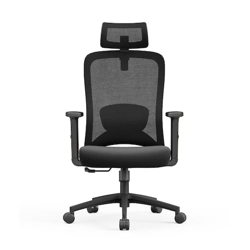 Cadeira de escritório com encosto de cabeça 2D; Encosto em tela mais estrutura em PP preto, com estrutura em fibra; Assento em tecido com espuma moldada por injeção; Apoio de braço fixo em PP em V com fibra; Mecanismo borboleta com função de inclinação e trava com 2,5 mm de espessura; Pistão a gás classe 3 aprovado pela BIFMA; Base em PP de 310 mm e rodízios de 60 mm aprovados pela BIFMA Marca: Não Informado