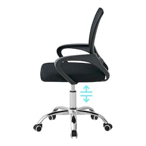 Especificações: Cor: Preta Linha: Arco Tipo: Cadeira Giratória Office Assento: Acolchoado com espuma de alta densidade Encosto: Ergonômico (promove suporte lombar) Base: Giratória com 5 rodízios de poliuretano (não riscam o piso) Ajuste de Altura: Sim, sistema pneumático a gás Material da Estrutura: Nylon de alta resistência e metal cromado Peso Máximo Suportado: Até 120 kg Diferenciais: Design sofisticado com detalhes cromados, rodízios silenciosos, fácil montagem. Dimensões: 109 x 56 x 58 cm (AxLxC)