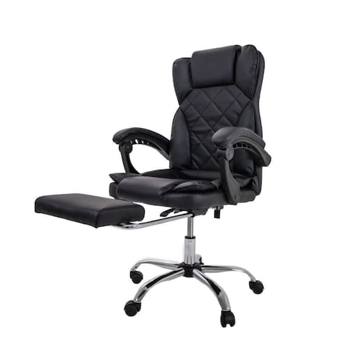 Cadeira para escritório Diana na cor Preta C/ Pillow Top no assento e encosto e apoio para os pés retrátil