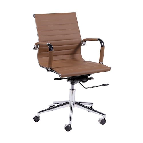 Estrutura em Metal; Estrutura do Encosto e Assento em Metal; Enchimento em Espuma D20; Acabamento em Couro PU; Pés com Rodízios; Acabamento Cromado; Possui Mecanismo de Regulagem de Altura