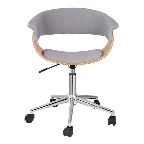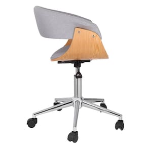 Que tal a Cadeira de Escritório Justine?Longos períodos de estudo ou trabalho podem causar desconforto pela posição cansativa, por isso é essencial investir em uma cadeira de escritório que ajude a ter uma melhor performance enquanto te mantém bem acomodado. Com o modelo Justine, você não só terá um assento ergonômico e aconchegante, mas também uma peça com design elegante que ajudará a deixar seu espaço com um ar mais profissional e moderno. Com características que ajudam a deixar a rotina mais prática, como rodízios e ajuste de altura, ela também conta com enchimento em espuma e formato perfeito para encaixar as costas e lombar. Com a combinação da cor do estofado + madeira da estrutura da concha, essa peça tem um visual lindo que vai agregar muito valor à decoração do seu home office, além de te ajudar a produzir mais e melhor. Marca: Keva
