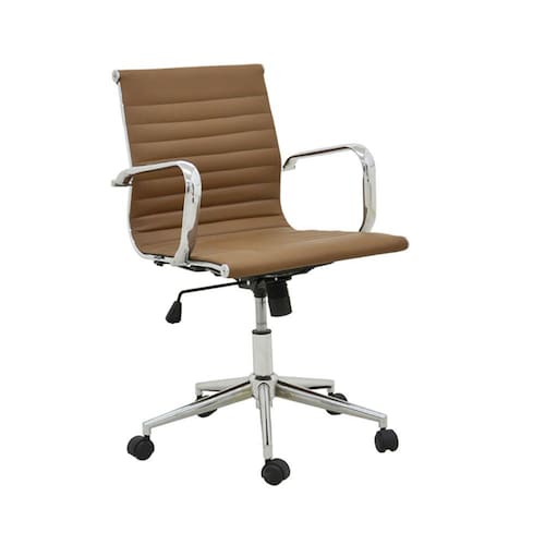 Estrutura em aço cromado, Assento e Encosto em Espuma D24; Revestimento em Poliuretano, Acabamento Fosco. Base giratória em aço cromado e rodizíos em nylon. Possui ajuste de altura, Pistão á gás, Sistema relax.