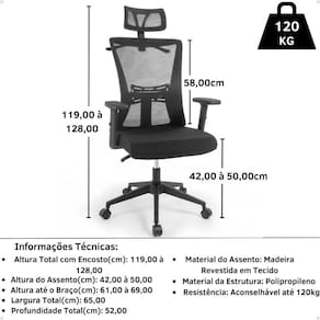 > Altura Total com Encosto(cm): 119,00 à 128,00