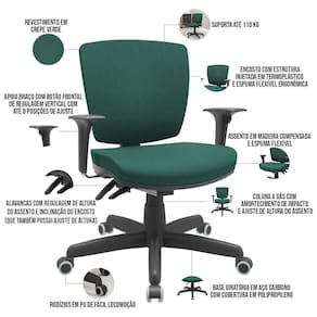 A Cadeira Executiva Giratória Flexi , é uma opção robusta e elegante para um ambiente de trabalho confortável. Essa cadeira combina elementos de design moderno e materiais duráveis para oferecer suporte ergonômico e resistência ao uso diário. Projetada para uso em ambientes de trabalho, essas cadeiras são conhecidas por sua estabilidade e durabilidade. O encosto baixo e assento estofado são características importantes dessa cadeira, pois fornecem apoio e conforto adicional para a lombar e ajudam a manter uma postura correta durante o período de ofício, é uma escolha funcional e esteticamente agradável para um ambiente de trabalho. Com seu design ergonômico, materiais resistentes e conforto adicional, essa cadeira oferece suporte adequado e durabilidade para enfrentar as demandas evitando assim o desconforto e fadiga ao longo do dia a dia no escritório. Além disso, apresenta recursos como altura ajustável, braços com regulagem vertical e rodízios para facilitar a movimentação ao redor do escritório. Adquira mais conforto para suas horas de trabalho! Dimensões do produto (L x A x P) 64 cm x 83 cm x 54 cm Medidas internas: Profundidade assento: 45 cm Largura assento: 49 cm Altura encosto: 41,1 cm Altura do chão ao assento: 45,8 á 56,6 cm Largura do encosto: 44 cm Características: Cadeira executiva, encosto com estrutura injetada em termoplástico. Apoio para braço com botão frontal de regulagem vertical, com até 8 posições de ajuste. Assento em madeira compensada e estofado em espuma ível, com coluna a gás e amortecimento de impacto. Possui alavancas de regulagem de altura do assento e inclinação do encosto. Revestimento em Poliéster na cor Verde. Base giratória em Aço de Carbono com cobertura em polipropileno. Rodízios em PU de fácil locomoção. Possui certificado NR-17. Suporta até 120 kg. - Por se tratar de estofado as medidas podem ter uma pequena variação de até 3 cm. - A tonalidade do produto real poderá ter ligeira variação devido o lote de tecidos. Observações importantes: - A montagem será de responsabilidade do comprador; - Responsabilizamo-nos pela em todo território , até onde as rodovias alcançam, fluviais ou aéreas devem ser cotadas a parte; - Não nos responsabilizamos, no ato da , por subir escadas/elevadores ou por guincho em apartamentos. - Eventuais despesas são de responsabilidade do comprador; - Confira as dimensões do produto e certifique-se de que passará normalmente por supostos elevadores, portas, escadas e/ou corredores de sua residência; Color: Verde | ColorFamily: Verde | ColorSimple: Verde | ColorSupplier: Verde | MaterialFamily: Madeira | ProductWeight: 10 kg | ProductWidth: 65 cm | SupplierSimpleName: Cadeira de Escritório Executiva Office Base Giratória Preto Baixa Flexi P03 Poliéster Verde - Lyam | ProductContents: 01 Cadeira de Escritório | OriginCountry: | ProductHeight: 84 cm | ProductLength: 67 cm | OriginState: PR | ProductWarranty: 90 dias após o do produto | ProductInstructions: Produto para uso em ambiente interno, nao devendo ficar exposto ao sol, calor e umidade excessivos. | Material: Madeira, espuma | Model: Flexi | SizeDescription: Altura: 84 cm Largura: 65 cm Profundidade: 67 cm