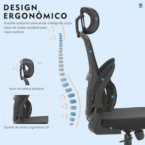 -apoios de braços 90 Dobre os braços para cima ou para baixo conforme necessário, os apoios de braços acolchoados aliviam o desconforto no cotovelo. Empurre a cadeira giratória para baixo da mesa e economize espaço.