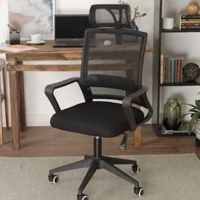 Cadeira de Escritório Giratória 360º Tela Mesh Com Encosto Cor: Preto Design único Essa Cadeira de Escritório possui um diferencial especial que a torna muito mais confortável para ficar algumas horas sentado: o encosto com apoio para cabeça. Essencial para o seu escritório, pode ser usada tanto em ambientes corporativos, home office ou particular. Confortável em qualquer ambiente Produzida com materiais de excelente qualidade e duradouros, como Poliéster, PP e Metal. Possui altura regulável, que se adapta para vários tipos de estatura, levando ainda mais facilidade para sua rotina. Além disso, sua base é giratória e contém rodízios para que você possa se movimentar com mais rapidez. Detalhes que fazem toda a diferença Ideal para alcançar a postura correta, possui regulagem de altura, encosto ergonômico para o corpo e a cabeça, ajuste de altura e rodízios leves para facilitar o seu dia a dia. Informações: Marca: Office Basics Cor: Preto Peso: máximo 150kg Pés Giratório Encosto A x L 41 cm x 58,5cm Marca: Office Basics