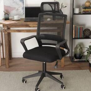 Cadeira de Escritório Giratória 360º Tela Mesh Com Encosto Cor: Preto Design único Essa Cadeira de Escritório possui um diferencial especial que a torna muito mais confortável para ficar algumas horas sentado: o encosto com apoio para cabeça.