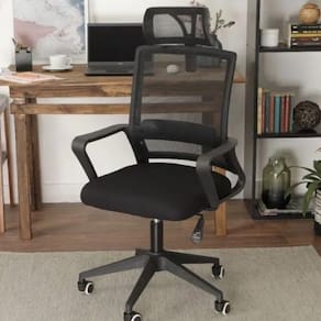 Cadeira de Escritório Giratória 360º Tela Mesh Com Encosto Cor: Preto Design único Essa Cadeira de Escritório possui um diferencial especial que a torna muito mais confortável para ficar algumas horas sentado: o encosto com apoio para cabeça. Essencial para o seu escritório, pode ser Utilizado tanto em ambientes corporativos, home office ou particular. Confortável em qualquer ambiente Produzida com materiais de excelente qualidade e duradouros, como Poliéster, PP e Metal. Possui altura regulável, que se adapta para vários tipos de estatura, levando ainda mais facilidade para sua rotina. Além disso, sua base é giratória e contém rodízios para que você possa se movimentar com mais rapidez. Detalhes que fazem toda a diferença Ideal para alcançar a postura correta, possui regulagem de altura, encosto ergonômico para o corpo e a cabeça, ajuste de altura e rodízios leves para facilitar o seu dia a dia. Informações: Marca: Office Basics Cor: Preto Peso: máximo 150kg Pés Giratório Encosto A x L 41 cm x 58,5cm Marca: Office Basics Ean: 6971912053863
