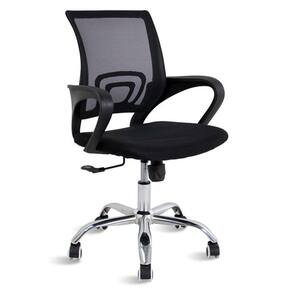 Cadeira de Escritório Giratória com Base Cromada - Preto