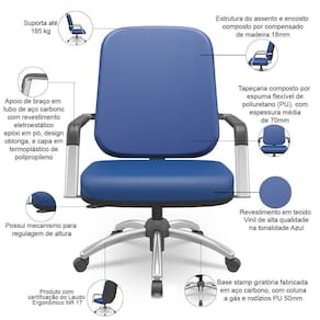 Com rodas: Sim | ProductInstructions: Produto para uso em ambiente interno, nao devendo ficar exposto ao sol, calor e umidade excessivos. | Formato de venda: Unitário | Cor: Azul | Tipo de cadeira de escritório: Cadeira Giratória Operativa Plus Size | Modelo detalhado: Magno Giratória Base Cromada | ColorSimple: Azul | Modelo: Magno | Color: Azul | ColorSupplier: Azul | Com apoio de braços: Sim | ColorFamily: Azul | Model: Magno | Materiais do aro para pés: na | Número de registrocertificação INMETRO: ABNT NBR 13962, NR 17 | Com aro para pés: Não | MaterialFamily: Vinil | Material do estofamento: Vinil | Material: Base Giratória de Aço Carbono, Espuma Flexível Poliuretano, Vinil | Requer montagem: Sim | ProductHeight: 115 cm | OriginCountry: Brasil | ProductContents: 01 Cadeira Giratória, manual de instruções | ProductWarranty: 90 dias após o recebimento do produto | OriginState: PR | SupplierSimpleName: Cadeira de Escritório Giratória com Braço Cromada Magno P03 Vinil Azul - Lyam Decor | ProductWidth: 71 cm | ProductLength: 73 cm | SizeDescription: Altura: 115 cm x Largura: 71 cm x Profundidade: 73 cm | ProductWeight: 25 kg