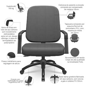 Fabricada com estrutura robusta, espuma de alta e ainda com a base giratória stamp, essa cadeira giratória plus size permite ajustes de altura de forma simples, garantindo que você encontre a posição perfeita para o seu corpo. Além disso, foi projetada pensando na ergonomia e no suporte necessário para as diversas atividades no escritório ou home office, por isso conta com rodízios em PU, que oferecem mobilidade suave e silenciosa, facilitando o deslocamento no ambiente de trabalho. Para completar, o design moderno e arrojado se adapta a diferentes espaços, combinando estilo e funcionalidade.