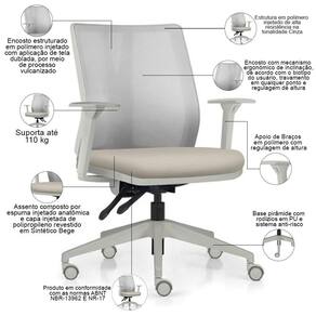 Color: CinzaBege | ColorFamily: Cinza | ColorSimple: Cinza | ColorSupplier: CinzaBege | Com apoio de braços: Sim | Com aro para pés: Não | Com rodas: Sim | Cor: CinzaBege | Formato de venda: Unitário | Materiais do aro para pés: na | Material: Polímero injetado, espuma injetada, tela dublada vulcanizada, rodízios em PU, revestimento em Sintét | Material do estofamento: Espuma Injetada | MaterialFamily: Polímero | Model: Flow Diretor | Modelo: Flow Diretor | Modelo detalhado: Flow Diretor | OriginCountry: Brasil | OriginState: PR | ProductContents: 01 Cadeira de Escritório | ProductHeight: 81 cm | ProductInstructions: Produto para uso em ambiente interno, nao devendo ficar exposto ao sol, calor e umidade excessivos. | ProductLength: 71 cm | ProductWarranty: 90 dias após o recebimento do produto | ProductWeight: 13 kg | ProductWidth: 71 cm | Requer montagem: Sim | SizeDescription: Altura: 81 cm x Largura: 71 cm x Profundidade: 71 cm | SupplierSimpleName: Cadeira de Escritório Giratória Diretor Flow F02 Base Cinza Sintético Bege - Lyam Decor | Tipo de cadeira de escritório: Diretor Giratória