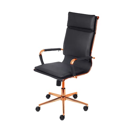 Cadeira De Escritório Giratoria Eames Soft Preta - Alta | RedGold Especificações: Cadeira Estilo Presidente com encosto alto Base giratória em aço cromado e pigmentado na cor Desejada com cinco rodizios Função de ajuste de altura por pistão a gás Sistema de reclinamento tipo relax com trava no ponto inicial e ajuste de pressão para maior conforto Encosto com estrutura em aço cromado com revestimento em couro PU Assento com estrutura em aço cromado com revestimento em couro PU Braços em aço cromado com revestimento em couro PU removível Espuma com densidade controlada Peso máximo recomendado: 120 Kg Necessita montagem. Medidas: Encosto Largura: 43cm Altura: 61cm Altura máxima até o chão: 110cm Altura mínima até o chão: 102cm Assento Profundidade: 48cm Largura: 48cm Altura máxima do chão até o assento: 52cm Altura mínima do chão até o assento: 40cm Braços Comprimento: 38cm Largura: 4,5cm Altura máxima até o chão: 80cm Altura mínima até o chão: 72cm Itens inclusos 01 Cadeira desmontada Marca: Não Informado