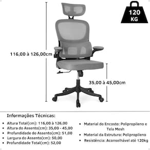 > Material do Encosto: Polipropileno e Tela Mesh