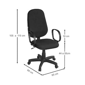 Base giratória sem relax e regulagem de altura com sistema a gás. Assento e encosto injetado e anatômico e tapeçado em tecido J. Serrano. Base e Braço na cor preta.