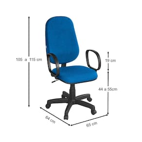 Base giratória sem relax e regulagem de altura com sistema a gás. Assento e encosto injetado e anatômico e tapeçado em tecido J. Serrano. Base e Braço na cor preta.