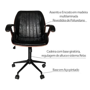 Tipo de Pés: Base Giratória em aço com Regulagem de Altura e Rodízios