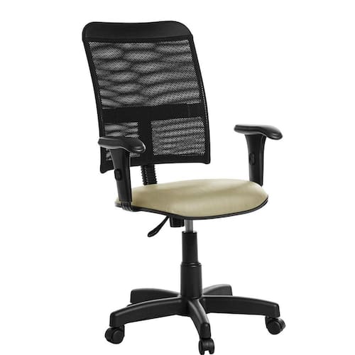 Cadeira de escritório giratória tela com braço rce bege Ideal para ambientes como: escritórios, corporativo, home office, consultórios, etc. Especificações: Revestimento: Cor do revestimento: bege; Tipo de revestimento: c0uro ecológico; Malha: 50% poliéster e 50% algodão; Composição superficial: 93,2% pvc e 6,8% poliuretano; Espessura aproximada: 0,12 cm +/-11% ; Detalhamento do assento: Espuma injetada de poliuretano; Largura 46 cm x espessura 5 cm x profundidade 42 cm; Detalhamento do encosto: Estrutura em aço preta revestida com tela mesh; Largura 45 cm x espessura 2 cm x altura 54 cm; Componentes da base giratória: Flange em aço preta; Pistão a gás preto, permite regulagem da altura; Estrela em aço com capa preta; Rodízios em nylon; Base possui raio externo de 28,5 cm, raio útil de 28 cm; Parafusos philips para montagem; Dimensões e peso montado: Altura do assento referente ao piso, mínima 42 cm, máxima 53 cm; Altura do topo do braço referente ao piso, mínima 59 cm, máxima 71 cm; Peso líquido aproximado: 11 kg; Peso bruto aproximado: 11,5 kg; Peso suportado: 110 kg uniformemente distribuídos; Dimensões da caixa: Largura 60 cm x profundidade 60 cm x altura 20 cm; Componentes inclusos: 01 assento executivo; 01 encosto em tela mesh; 01 suporte de encosto com capa preto; 01 flange em aço preta; 01 pistão com capa preta; 01 estrela em aço com capa preta; 05 rodízios em nylon preto; 02 braços reguláveis pretos; Parafusos para montagem philips; Manual de montagem. Montagem: A montagem deve ser realizada pelo cliente seguindo o manual de montagem. : 180 dias contra defeitos de fabricação, previstos em lei; Obs: Pode haver variação de tonalidade referente ao lote do revestimento conforme a resolução de computadores e smartfones.