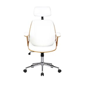 Madeira | Metal | NylonDeixe seu escritório, home office, ou salas de reuniões muito mais confortável com a nossa Cadeira de Escritório Lisboa - Branca! Ela é uma peça que proporciona conforto e sofisticação para seu ambiente, além de ser giratória, com ajuste de altura, estrutura de madeira revestida em PU, com apoio para cabeça, base cromada e rodízios em nylon, ela promete trazer muita modernidade e conforto para o seu dia a dia!
