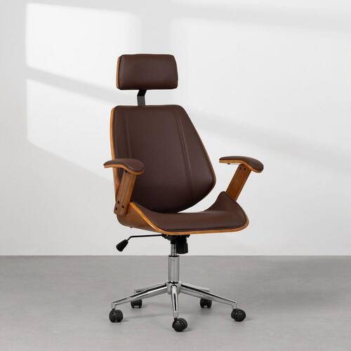 A Cadeira de Escritório Lisboa - Marrom vai fazer toda a diferença no ambiente de trabalho, além de garantir mais conforto para o dia a dia e beleza para o ambiente. Com estrutura em madeira e espuma com revestimento em PU, a peça possui base cromada com sistema relax e rodas que não danificam o piso.