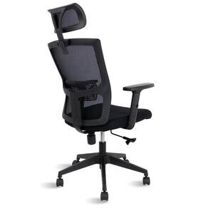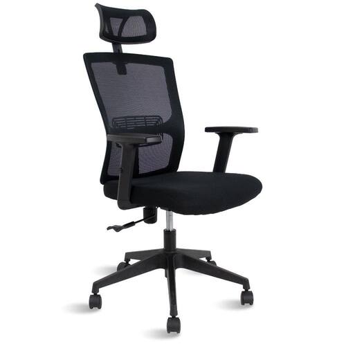 A cadeira de escritório presidente Brandon Healer na cor preta é produzida em estrutura de aço com revestimento em plástico, contraplacado com espuma D26 e revestimento em malha. Com apoios de braços ajustáveis, regulagem de altura, encosto de cabeça, rodas plásticas de 50mm e elevação a gás.