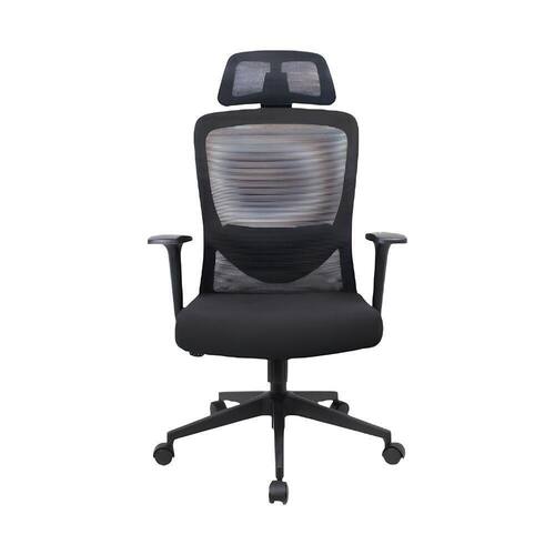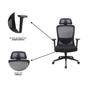 Cadeira de Escritório Presidente Elite Presidencial Tela Mesh Rodízios Giratória com Braços Ajustáveis Preto
