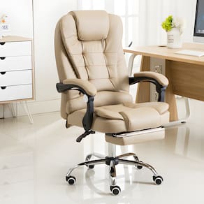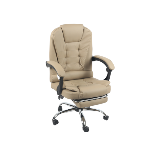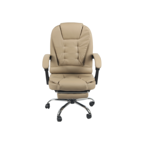 Especificações Cor: Caqui Revestimento: Couro sintético resistente e elegante Apoio para os pés retrátil: permite relaxar as pernas com praticidade Encosto reclinável: ajustável entre 90° e 150°, ideal para aliviar a tensão nas costas Estrutura: armação metálica robusta com espuma de alta densidade para suporte prolongado Capacidade de carga: até 150 kg, com base giratória e rodízios silenciosos de 360° Dimensões do Produto Embalado: 69 x 26 x 58 cm (AxLxC) Dimensões do Produto: 95 x 45 x 43 cm (AxLxC)