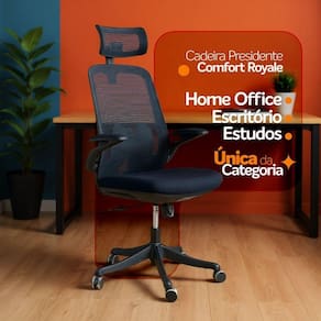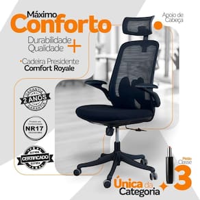 A Comfort Royale foi desenvolvida para quem busca uma cadeira prática, elegante e funcional. Com apoio de cabeça ajustável, braços retráteis e estrutura ergonômica, ela oferece conforto e liberdade para diferentes rotinas de trabalho.