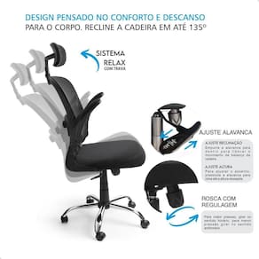 - Cadeira: Material do Assento e Encosto em tela mesh de alta qualidade