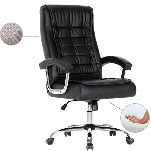 Cadeira de escritório presidente monique big preta - ergonómica, molas ensacadas, couro sintético, cadeira de escritório presidente monique big preta molas, poltrona cadeira para escritório com braço base cromada rodinhas de nylon resistente, confortável e tipo poltrona executiva giratória com ajuste de altura para 150kg big monique molas ensacadas pillow top.
