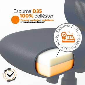 Assento com espuma moldada de densidade 50, oferecendo conforto firme.