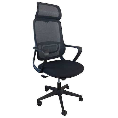 O encosto é revestido em tecido Mesh Premium, composto por 64% de poli elastômero e 36% de poliéster. Já o assento conta com espuma 35D, revestida em tecido 100% poliéster.