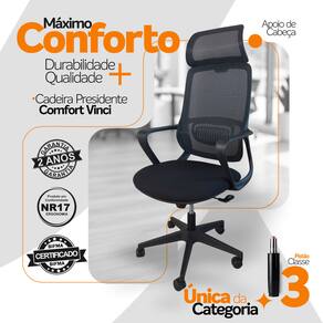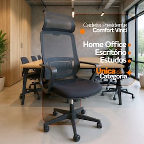 A Cadeira Presidente Comfort Vinci é perfeita para home office, salas de reunião ou escritórios que valorizam funcionalidade, conforto e um visual moderno.