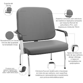 Com um design pensado para o acomodar usuários com sobrepeso, essa cadeira plus size é ideal para escritórios, salas de espera e recepções, oferecendo um acolhimento excepcional. Além disso, é fabricada com uma estrutura de aço carbono resistente e um acabamento epóxi que garante durabilidade e resistência, combinando funcionalidade e elegância. Para completar, o assento amplo e confortável proporciona uma experiência de uso agradável, seja para longas horas de trabalho ou momentos de espera.