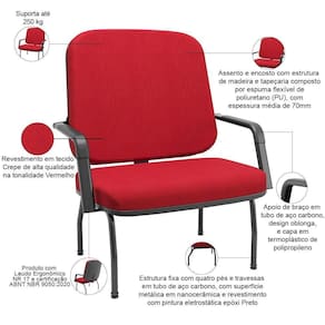 ColorSimple: Vermelho | Model: Magno | SizeDescription: Altura: 104 cm x Largura: 87 cm x Profundidade: 72 cm | ProductHeight: 104 cm | Tipo de cadeira de escritório: Cadeira Recepção, Sala de Espera | Cor: Vermelho | Modelo: Magno | Número de registrocertificação INMETRO: ABNT NBR 13962, NR 17 | Material do estofamento: Crepe | ProductWidth: 87 cm | SupplierSimpleName: Cadeira de Escritório Recepção com Braço Fixa Preta Magno P03 Crepe Vermelho - Lyam Decor | Color: Vermelho | Formato de venda: Unitário | ColorFamily: Vermelho | Com apoio de braços: Sim | ColorSupplier: Vermelho | Modelo detalhado: Magno com Braço Base Preta | Com rodas: Não | OriginState: PR | Materiais do aro para pés: na | Com aro para pés: Não | OriginCountry: Brasil | MaterialFamily: Crepe | Requer montagem: Sim | ProductWeight: 34 kg | ProductWarranty: 90 dias após o recebimento do produto | ProductContents: 01 Cadeira, manual de instruções | Material: Tubo de Aço Carbono, Espuma Flexível Poliuretano, Crepe | ProductInstructions: Produto para uso em ambiente interno, nao devendo ficar exposto ao sol, calor e umidade excessivos. | ProductLength: 72 cm