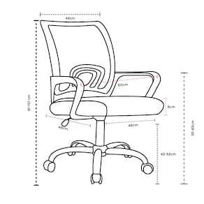 Altura do chão ao braço (mínimo – máximo): 55-65cm