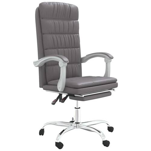 Cadeira de escritório reclinável de couro sintético cinza vidaXL — estrutura de metal e madeira compensada, encosto e altura ajustáveis, rotação de 360 graus, rodízios rolantes para facilitar a mobilidade, é necessária uma montagem simples